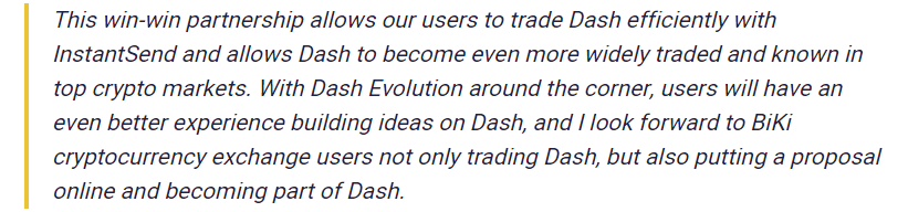 In accordance with the official report, the investors using Biki’s exchange platform will now be able to use Dash’s revolutionary InstantSend technology on the network. The prominent feature helps to lock the crypto transactions using a subset of the masternode network. InstantSend registers every transaction permanently on the exchange network in less than two seconds span which eventually speeds up withdrawal and deposit processes for the customers. Biki.com will aid the Dash community in expanding its operations to new market spaces such as South Korea, Vietnam, and China by initiating campaigns and progressive activities together.