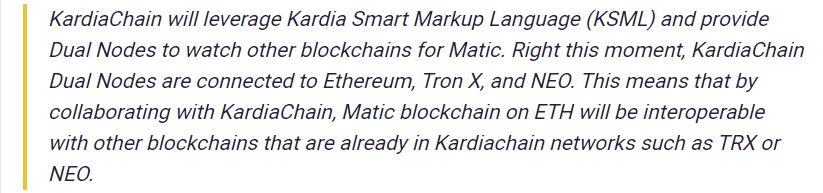 In an official post on Medium, KardiaChain stated that its partnership with Matic Network is aimed at developing a highly efficient approach to drive mass adoption by combining Matic’s scalability and KardiaChain’s interoperability. It further said,