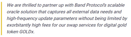 GOLDx is a novel and innovative creation. Presently, the only gold token reserve is PAXG. The partnership of dForce and Band Protocol will evaluate how to secure gold tokens to add to the future reserves.