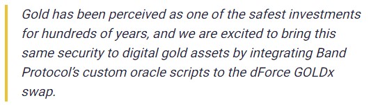 This integration of Band Protocol oracle with GOLDx on dForce is just the start of a long-term successful working relationship.