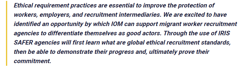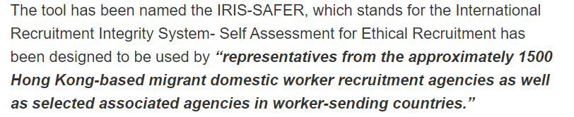 The IOM is an intergovernmental agency on migration and therefore, focuses on any problem area faced by immigrants and provides a pragmatic resolution of these that would help industry associations, migrant communities, governments, and other stakeholders in the process. The IRIS-SAFER has thus been conceived to mitigate and resolve any migrant related issues like the one faced by these workers in Hong Kong.