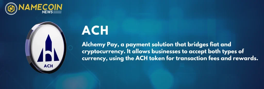 ACH, or Alchemy Pay, is a hybrid payments system intended to allow companies to accept both traditional money and crypto. It is used as a payment method, enabling the merchants to carry out international transactions with no complicated currency conversion. The ACH token is internal to the platform for charges and bonuses and therefore Alchemy Pay is a very attractive solution for companies wanting to enhance their payment capabilities in the digital era.