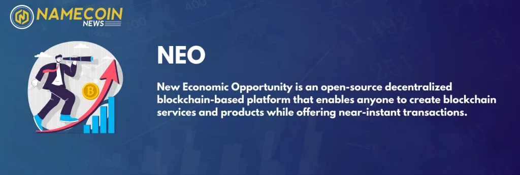 NEO stands for New Economic Opportunity, a blockchain project that enables the development of decentralized applications and digital assets. It is suited to build the “smart economy” with digital assets, digital identity, and smart contracts inside its ecosystem.