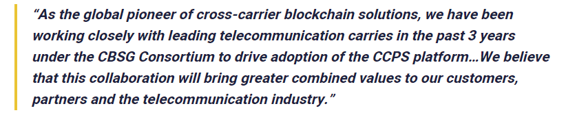 Therefore this partnership is intended to be a very strategic one as it has the potential to bring about a significant change in the way telecommunication is perceived and would transform the industry through the application of blockchain. The collaboration would allow the leveraging of blockchain technology through carriers like the CBSG and the consortium network has been created in a manner that it would support and enable many uses specific to this industry like cross border payments, digital identity, telecom supply chain also in turn generating opportunities for the members of the industry.