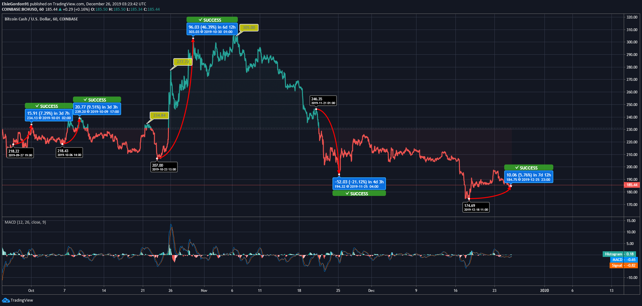 If we look at the price movement of last week, the BCH coin has recorded a 5.76% hike as compared to the price on December 18. The movement for the coin will remain bearish and it may reach its next support $184.01 soon.