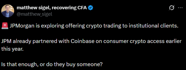 As institutional adoption of crypto in 2025 reached new heights, the leading financial giant, JPMorgan, is reportedly exploring ways to integrate crypto trading into its existing financial infrastructure.