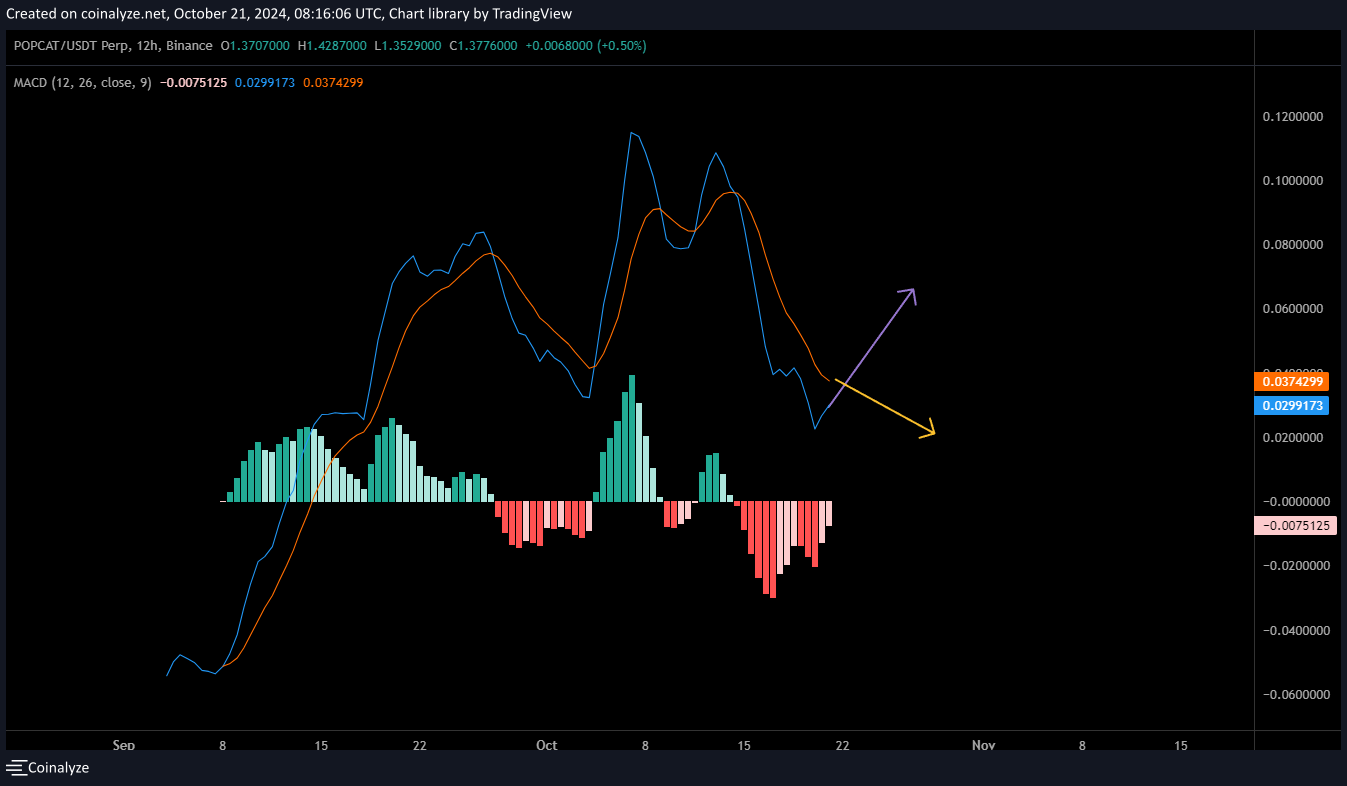 The current price is quite above its 50-day SMA at $0.933372. According to POPCAT’s MACD technical analysis, the recent price rise is unrelated to the bullish move ahead. The MACD and Signal line are attempting a bullish crossover. Once the crossover is confirmed, further bullish momentum will set course, potentially driving the price 100x. Crypto traders can keep an eye out for this breakout for huge gains.