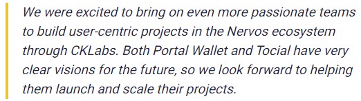 Both Tocial and Portal Wallet shall receive funds worth $100,000, an expert program manager, guidance from the co-founders of Nervos blockchain, and access to networking and renowned investors like Polychain, Multicoin, 1confirmation, Blockchain Capital, Dragonfly, and others.