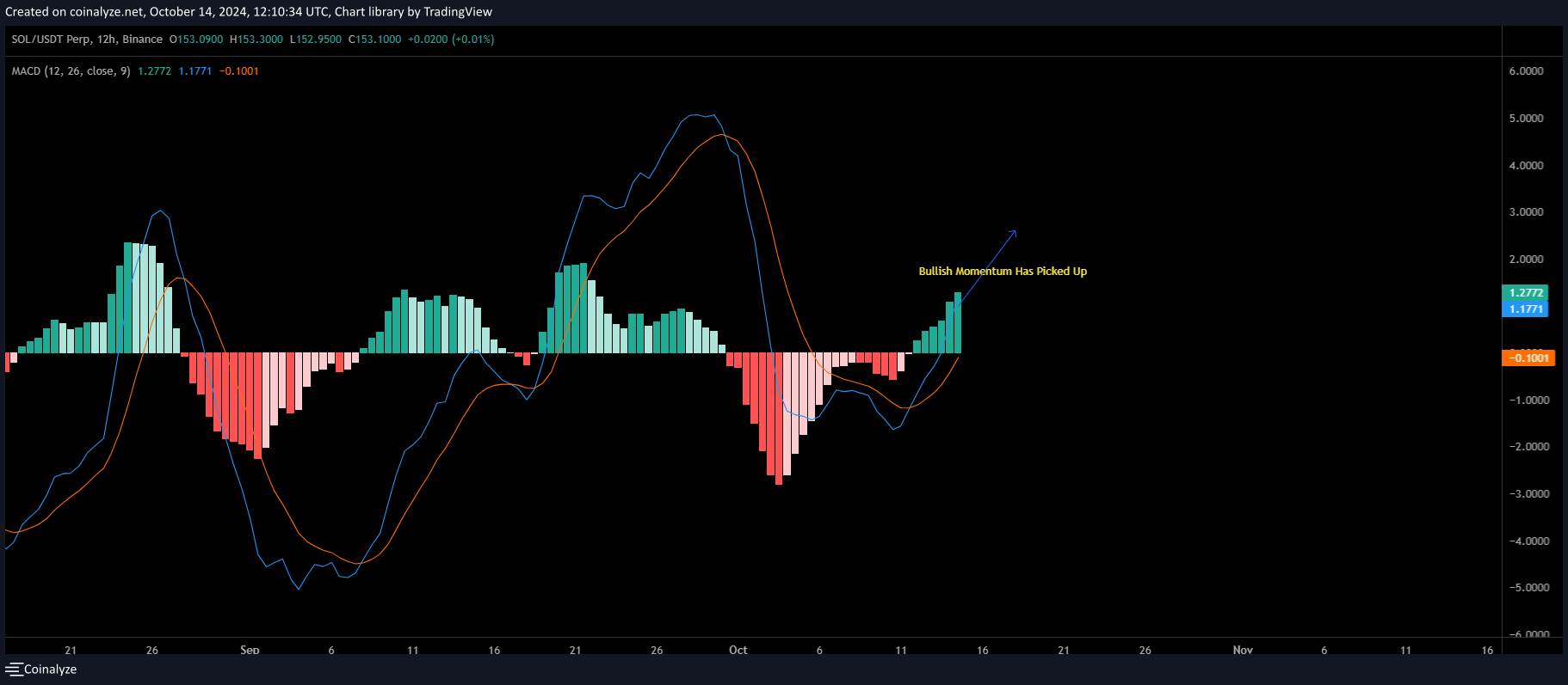 For the last 12 hours, Solana has been experiencing price swings. According to the MACD analysis, Solana has yet again broken into a bull run on October 14th. The histograms have turned green and increased in size, further cementing that a bull run is on its way. If the current price level can break off, Solana can reach its one-month high of $161.62. However, it is too soon to predict if Solana will get the $161 mark, as Solana is currently struggling to break through resistance levels, as showcased by the brief wanes in the bullish momentum. It’s best to follow up on the Solana Price Analysis for a better in-depth understanding