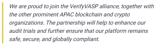 VerifyVasp is a “Travel Rule” solution provider that focuses on the decentralized protocol for the virtual asset service provider, instantly securing their data. VerifyVASP is also a member of the Blockchain Association Singapore and Fintech Association Singapore.