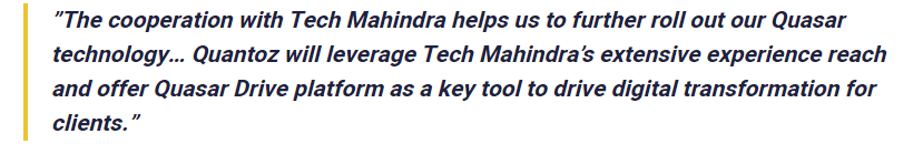 IT services and business re-engineering solutions firm Tech Mahindra recently announced that it has joined hands with Quantoz, to offer Quasar, a blockchain-based service which assures secure digital payments.