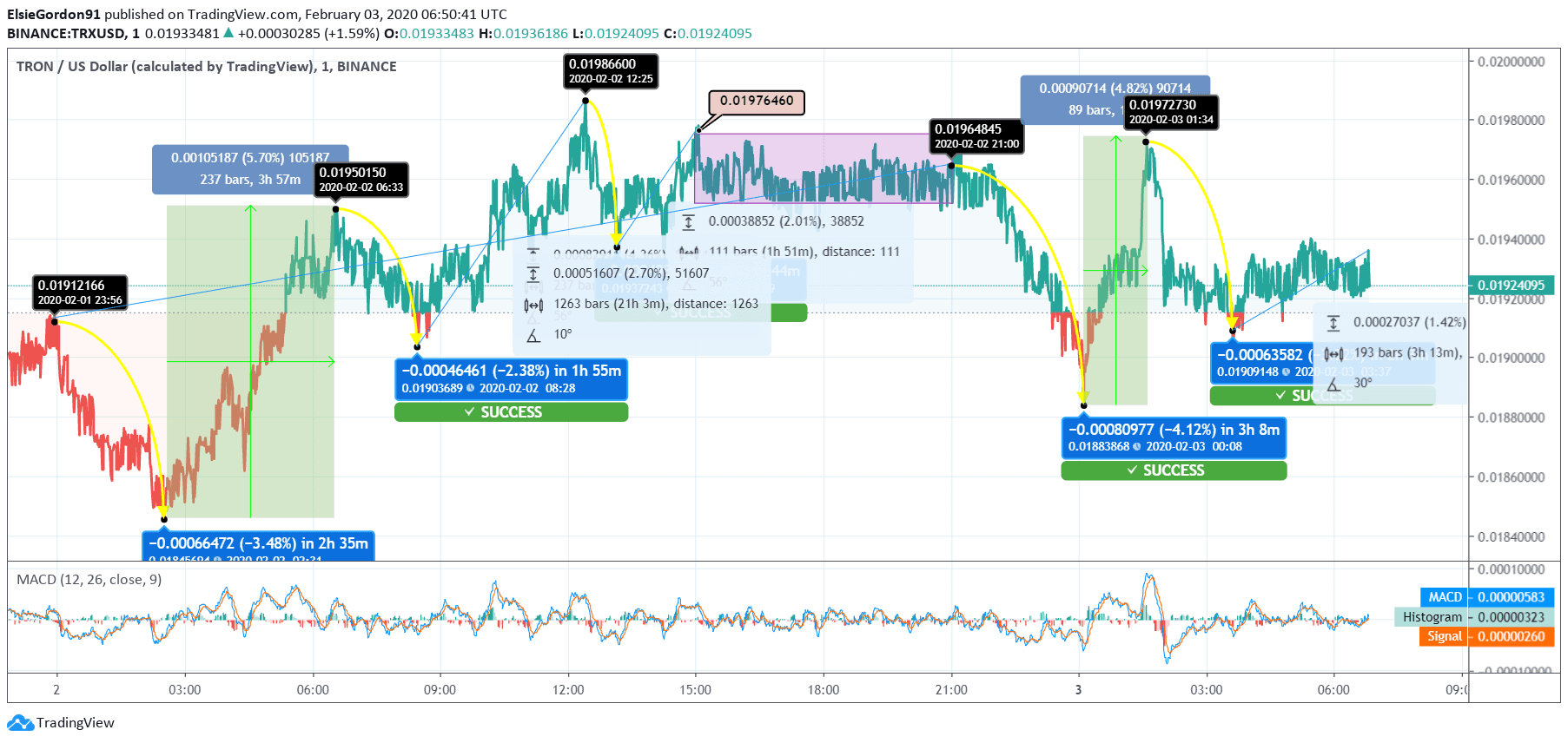 As per the latest TRON prediction, we can expect that the currency is heading towards the immediate resistance level at $0.0197. The same might jump to the next resistance level at $0.0204 by the end of the day.
