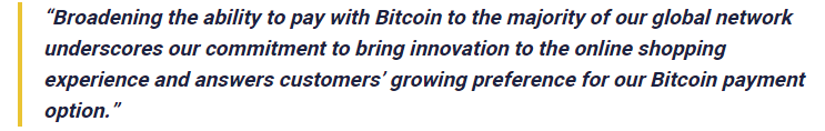 Before launching its BTC payments, back in January 2014 the company has said it might start accepting BTC.