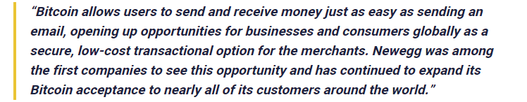 Newegg’s Global Sales President, Anthony Chow stated Newegg was the first important store to join the Bitcoin market in 2014; this is why the company always tries to serve this emerging market. As soon as the bitcoin payment option was introduced, customers started to purchase products using this emerging technology.