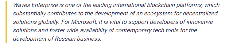 Waves Enterprise, the globally-acclaimed hybrid blockchain network that infuses private and public permissioned blockchain technologies, has signed a memorandum with Microsoft’s Russian office to lay efforts in developing corporate blockchain projects and cloud storage solutions. The team took to its Twitter handle to broadcast the news about the partnership. The post read: