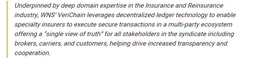WNS, a business giant specializing in global Business Process Management (BPM), announced the inception of a risk syndication solution powered by blockchain technology known by the name, WNS VeriChain.
