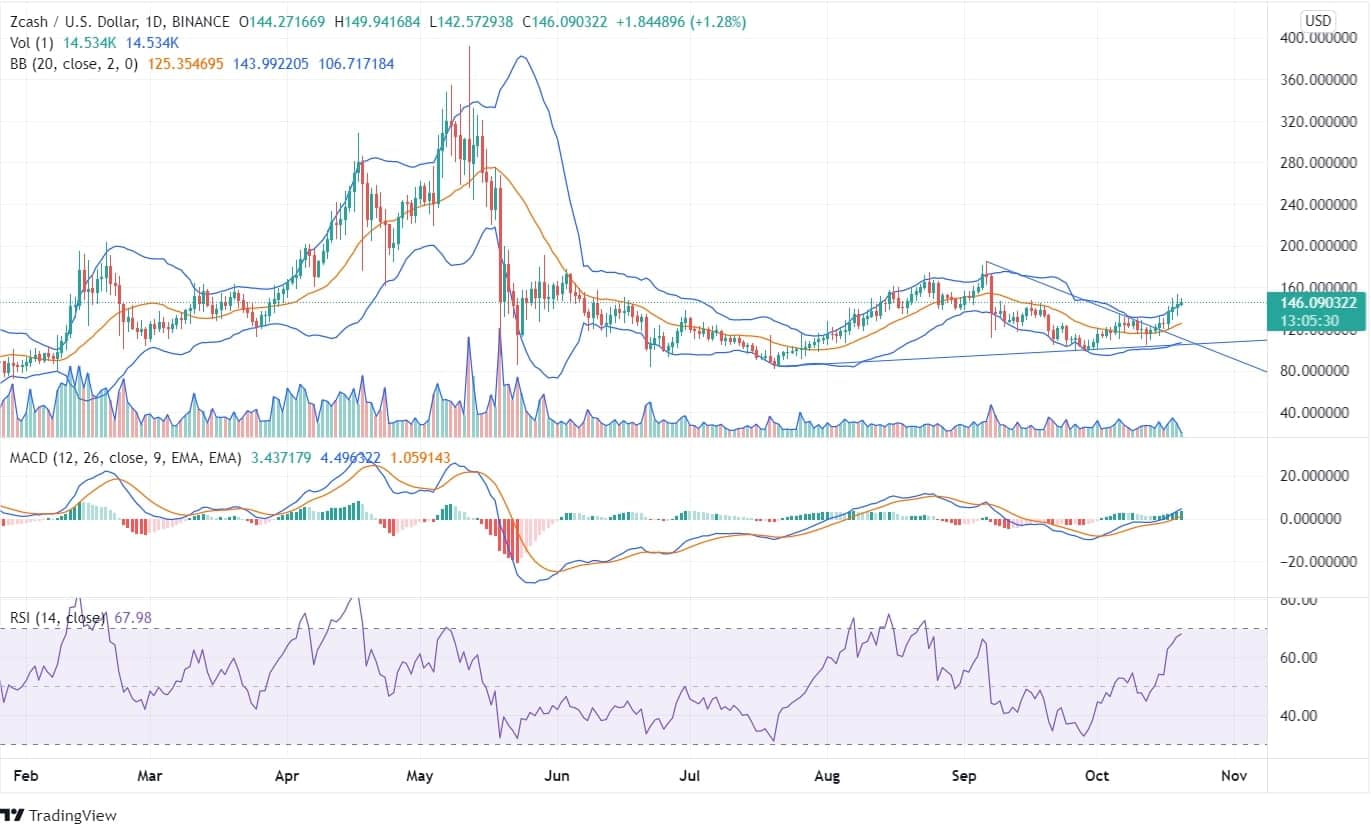 In a time frame of around 15 days, the ZEC coin has given a return of 50% to its investors. The coin is currently moving around $146 and is soon expected to reach $184.
