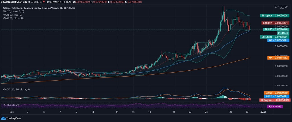However, with intraday rejection and downside correction below $0.080, the price of Zilliqa is breaching the lower BB with a confirmed bearish crossover on MACD. The RSI also negatively turns towards the oversold region and lies at 44.05 after a dip from the YTD high. To know further about Zilliqa price prediction, you can check out our cryptocurrency news page.